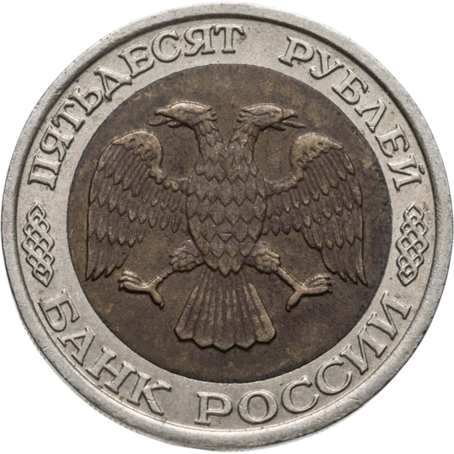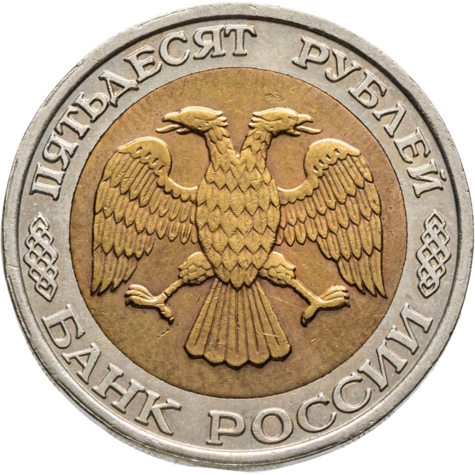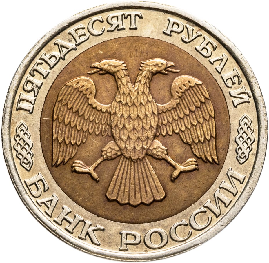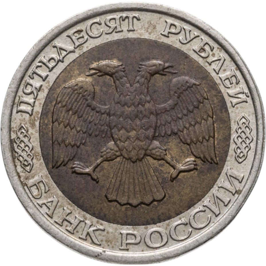 Выпуск биметаллической монеты 50 рублей в 1992 году осуществлялся одновременно на Ленинградском (ЛМД) и Московском (ММД) монетных дворах. Коллекционеры выделяют три основных разновидности этой биметаллической монеты. Самый распространенный вариант - с литерами ЛМД, более редкие монеты имеют монограмму ММД.