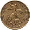 Слева вдоль выступающего канта слово «БАНК», справа «РОССИИ», внизу год выпуска «2002», в центре Георгий Победоносец колющий копьем змея, под передней ногой коня буквенное обозначение монетного двора «М» (ММД).