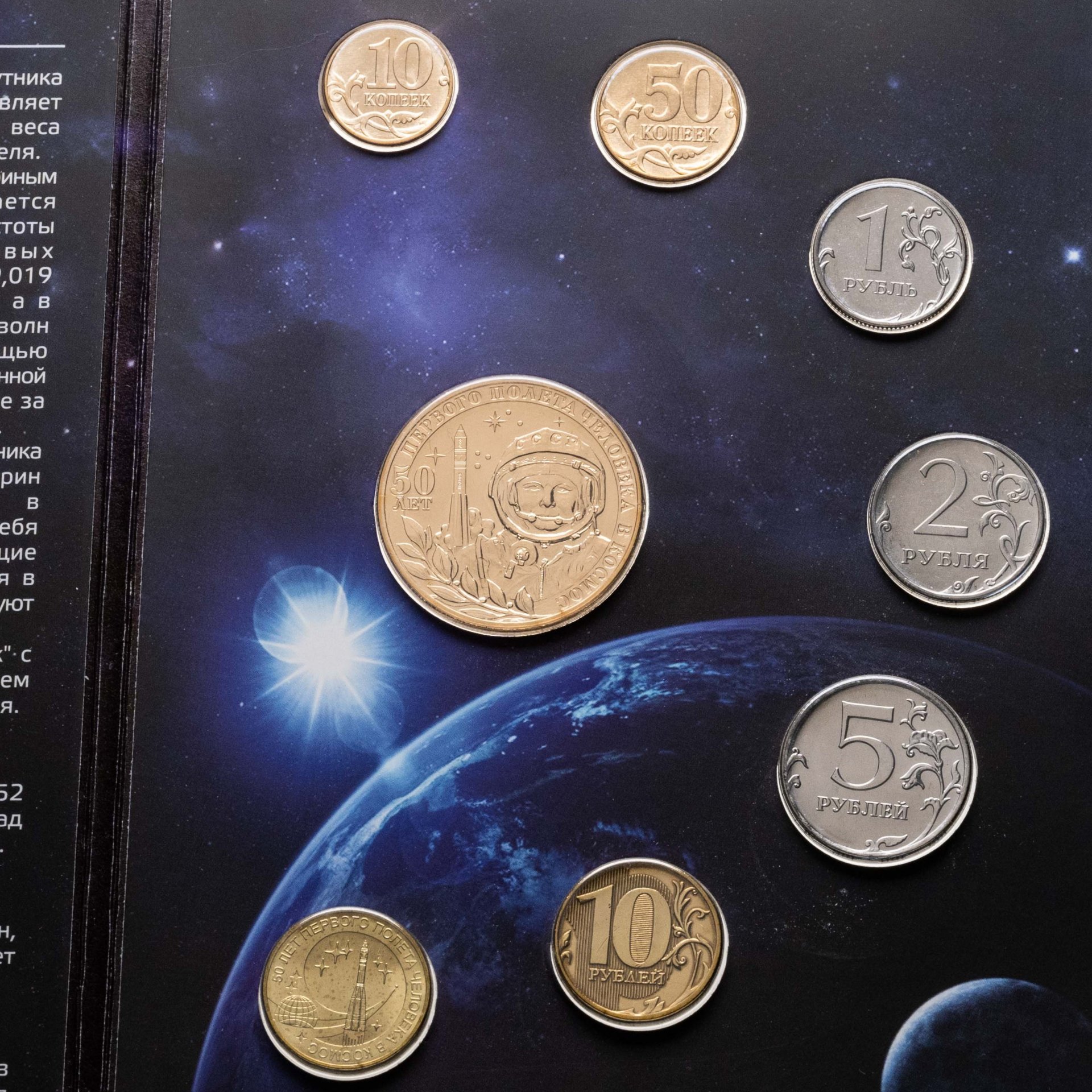 купить Официальный набор разменных монет ГОЗНАК СПМД 2011 года «50 лет первого полета человека в Космос» с жетоном
