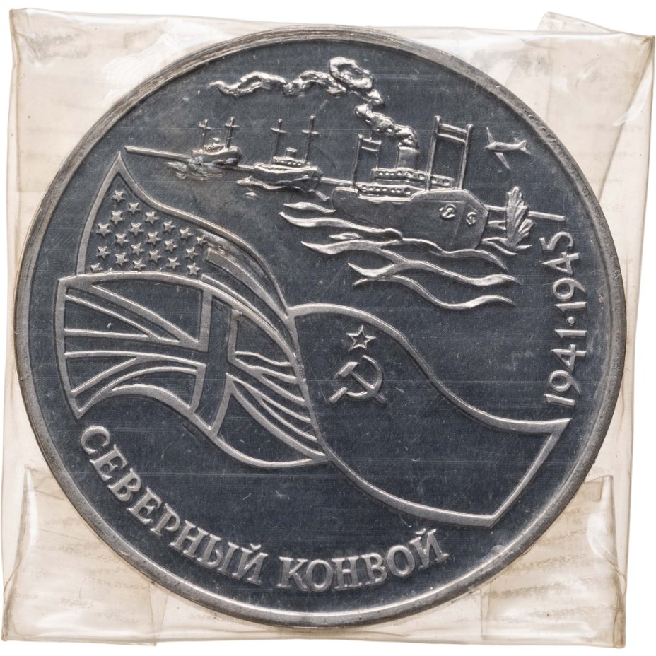 Купить 3 рубля 1992 ЛМД Proof "Северный конвой"