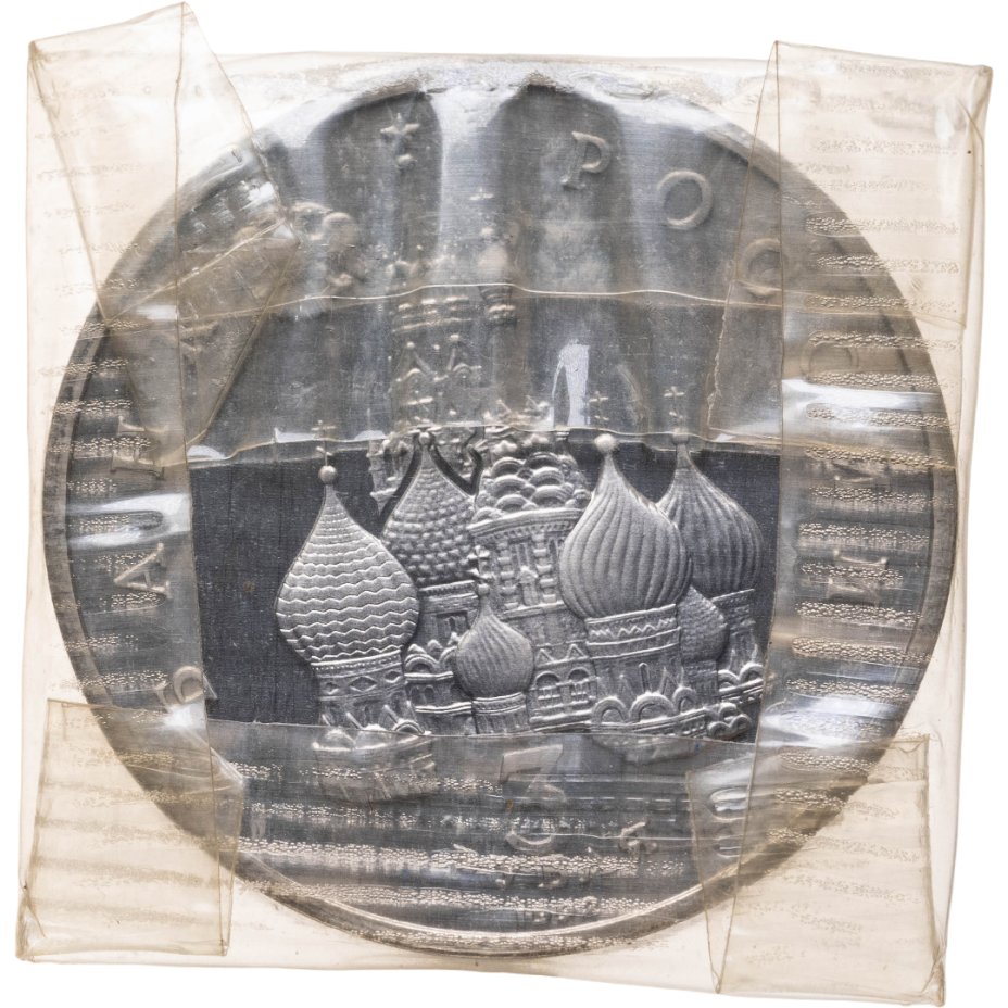 Сверху влево небольшое изображение двухглавого орла, слева слово «БАНК», справа «РОССИИ», внизу обозначение достоинства монеты - цифра «3» под ним слово «рубля», ниже год выпуска монеты «1992», в середине Собор Покрова Пресвятой Богородицы (собор Василия Блаженного) и за ним Спасская башня Московского Кремлля, чуть ниже и правее монограмма монетного двора «ЛМД».