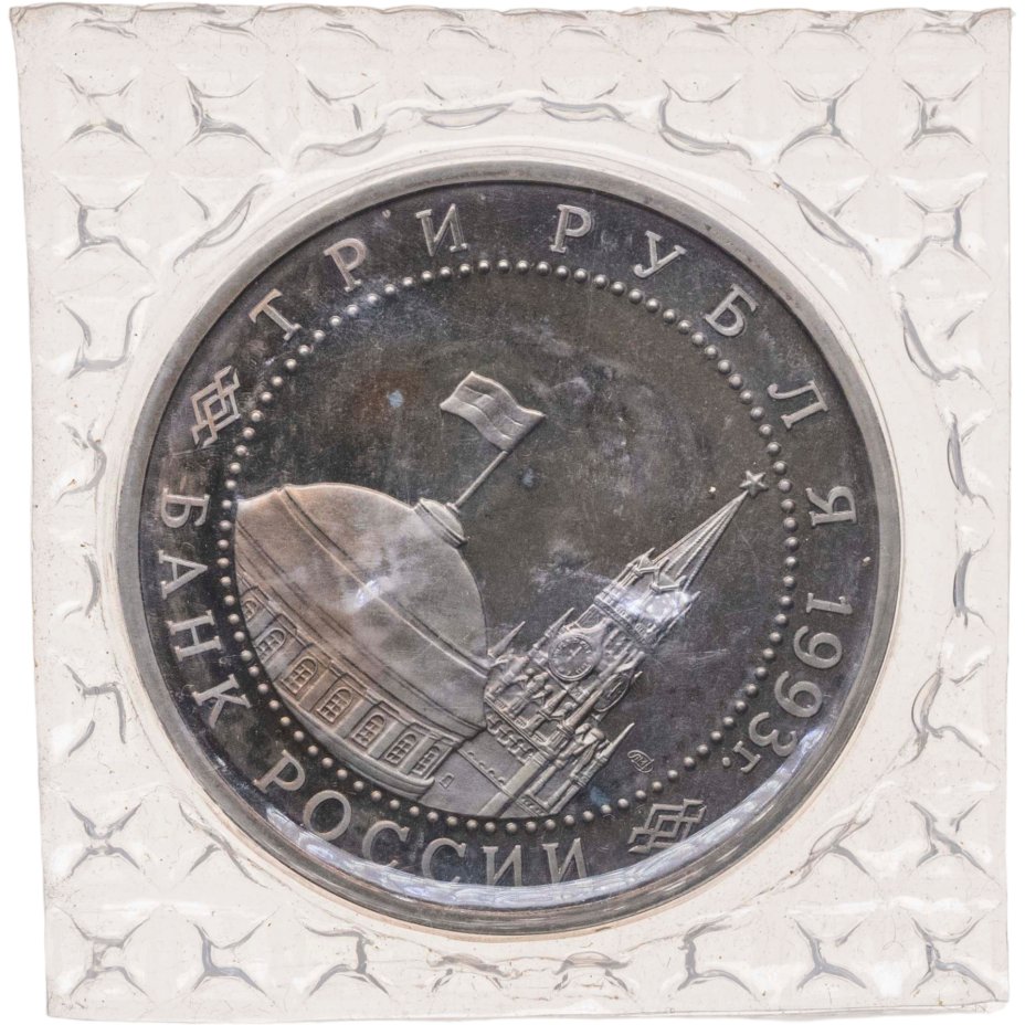 3 рубля 1993 ЛМД Proof 50-летие Победы на Курской дуге, в запайке