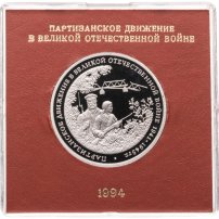 3 рубля 1994 ММД Proof Партизанское движение в Великой Отечественной войне в футляре Банка России