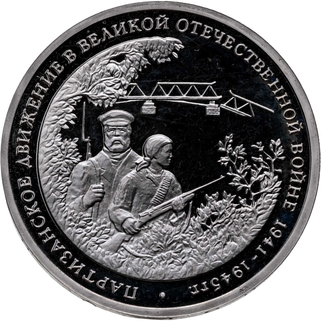3 рубля 1994 ММД Proof "Партизанское движение в Великой Отечественной войне"