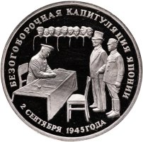 3 рубля 1995 ЛМД Proof безоговорочная капитуляция Японии