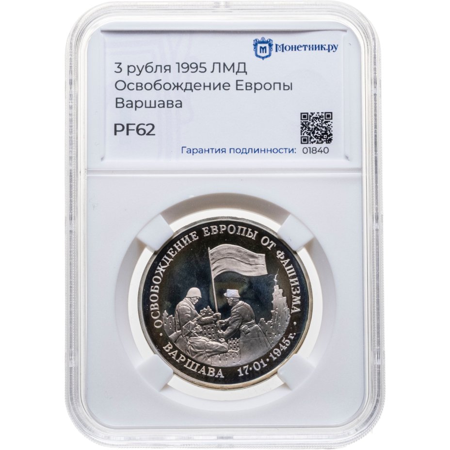 3 рубля 1995 ММД Proof освобождение Европы от фашизма. Варшава