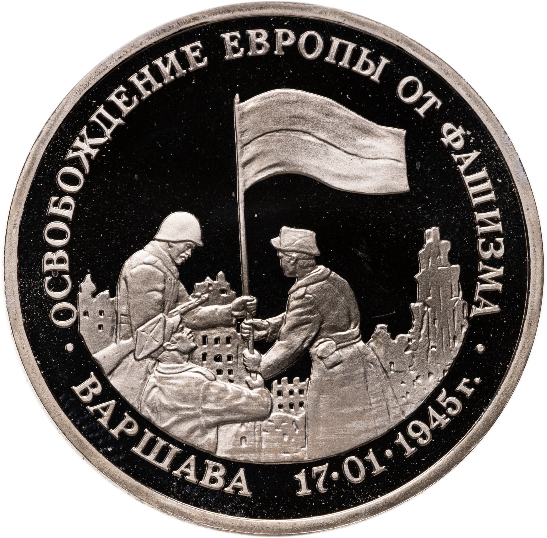 3 рубля 1995 ММД Proof освобождение Европы от фашизма. Варшава