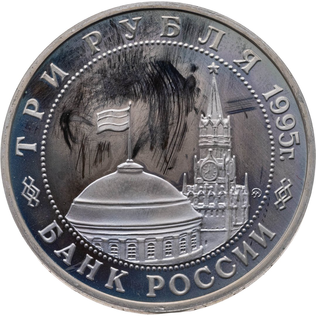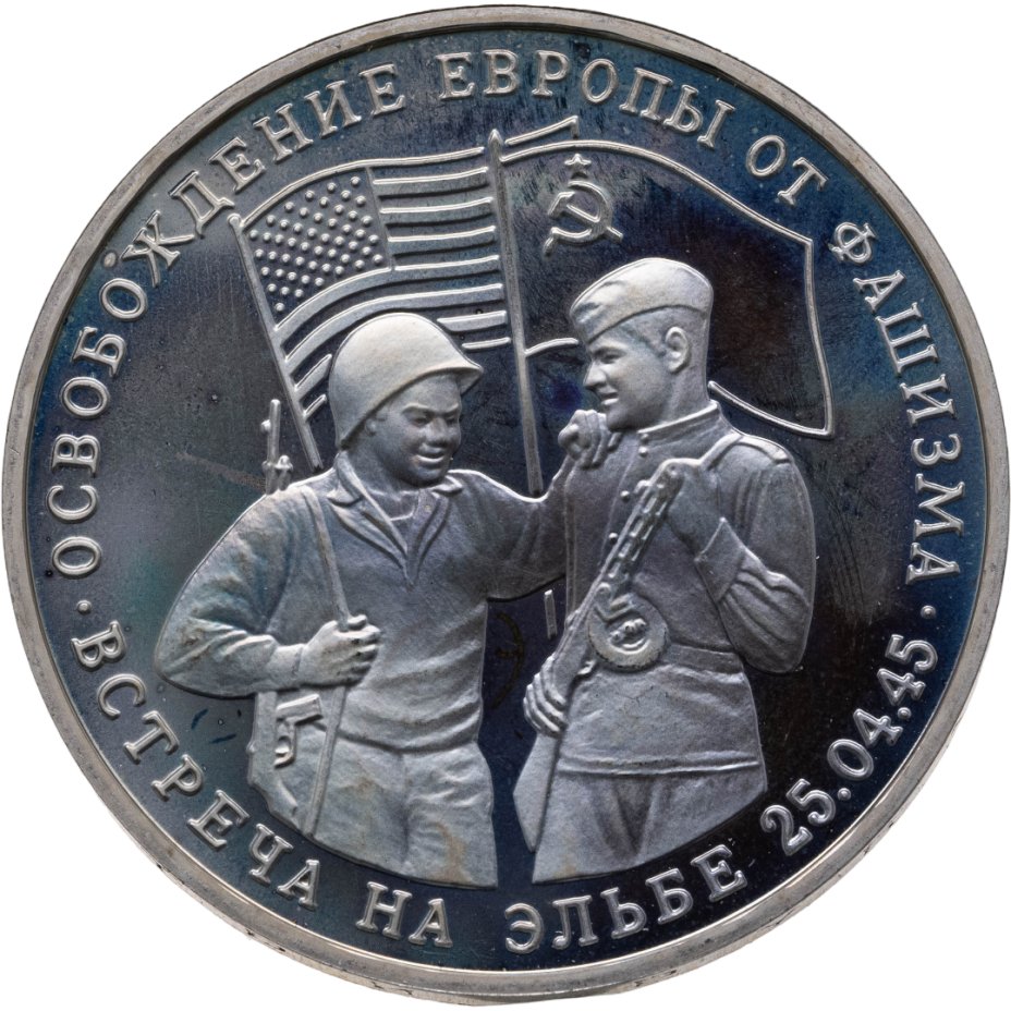 3 рубля 1995 ММД Proof освобождение Европы от фашизма. Встреча на Эльбе