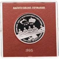3 рубля 1995 Proof Освобождение Европы от фашизма - Подписание Акта о безоговорочной капитуляции фашистской Германии в футляре Банка России