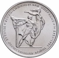 В 2015 году мир праздновал 70-летие освобождения от немецко-фашистских захватчиков. В честь этого знаменательного события Банк России отчеканил несколько серий памятных обиходных и коллекционных монет. Первыми, ещё в конце 2014 годы были выпущены в оборот 5-рублёвые стальные юбилейные монеты из серии «Важнейшие события Великой Отечественной войны». В серию входит 18 монет с названиями и символами крупнейших сражений и операций.