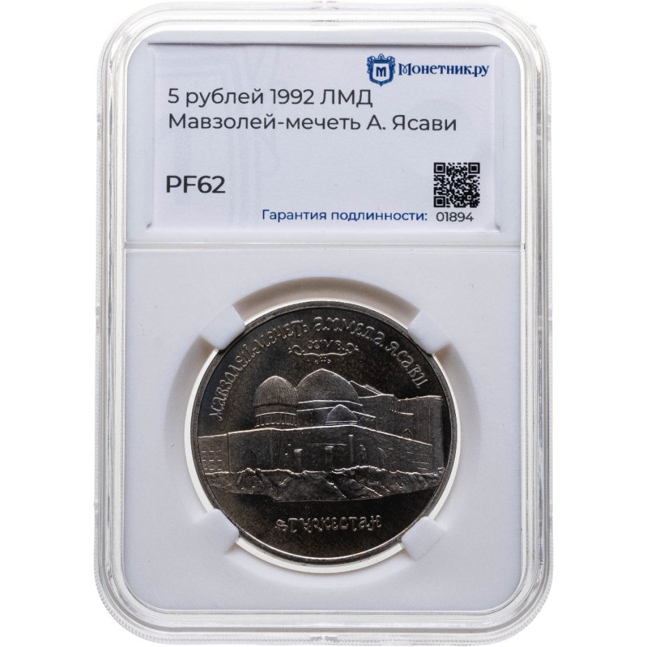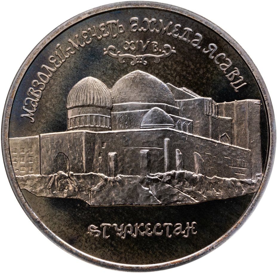 5 рублей 1992 ЛМД Proof Мавзолей-мечеть Ахмеда Ясави в г. Туркестане