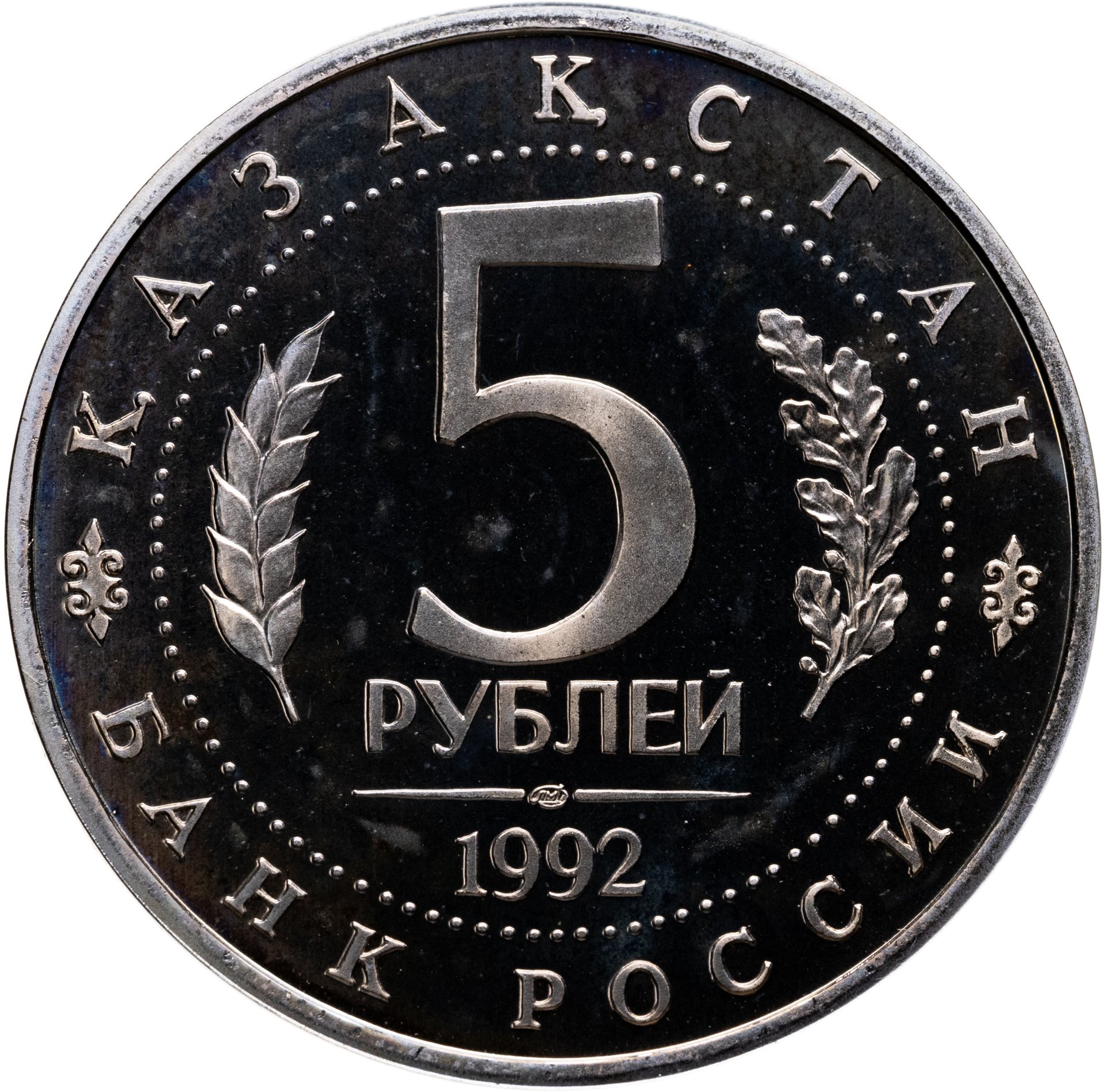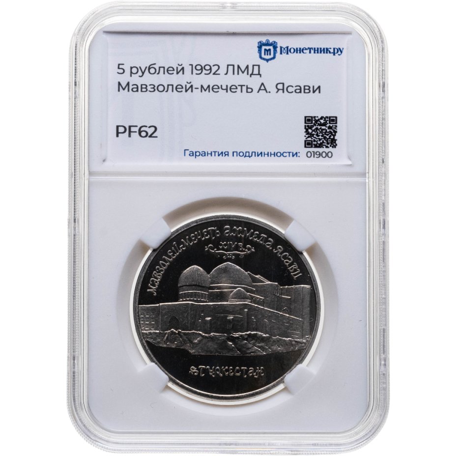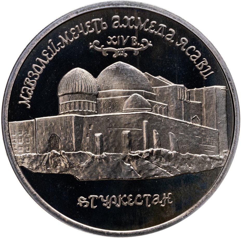 5 рублей 1992 ЛМД Proof Мавзолей-мечеть Ахмеда Ясави в г. Туркестане