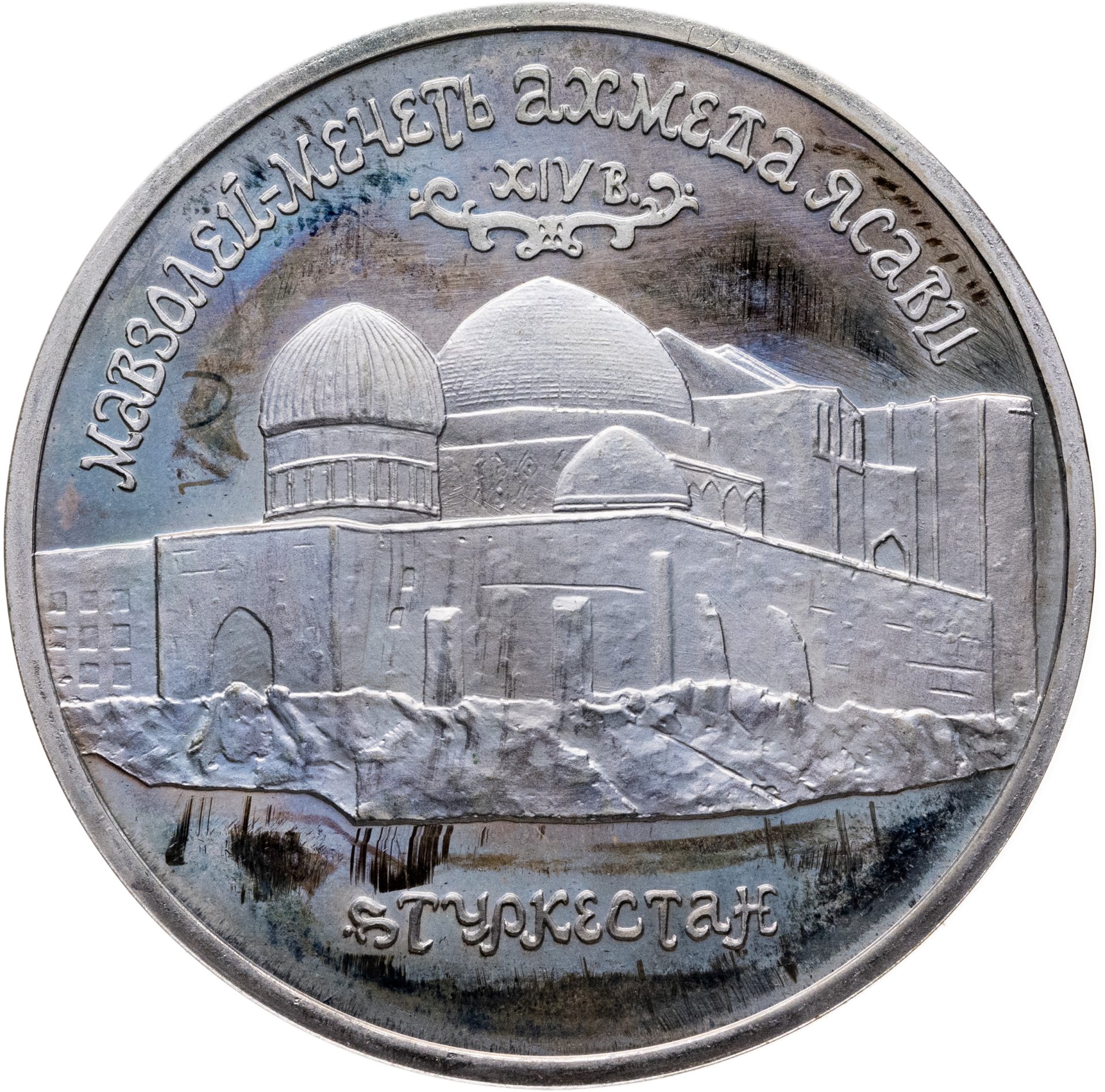 5 рублей 1992 ЛМД Proof Мавзолей-мечеть Ахмеда Ясави в г. Туркестане