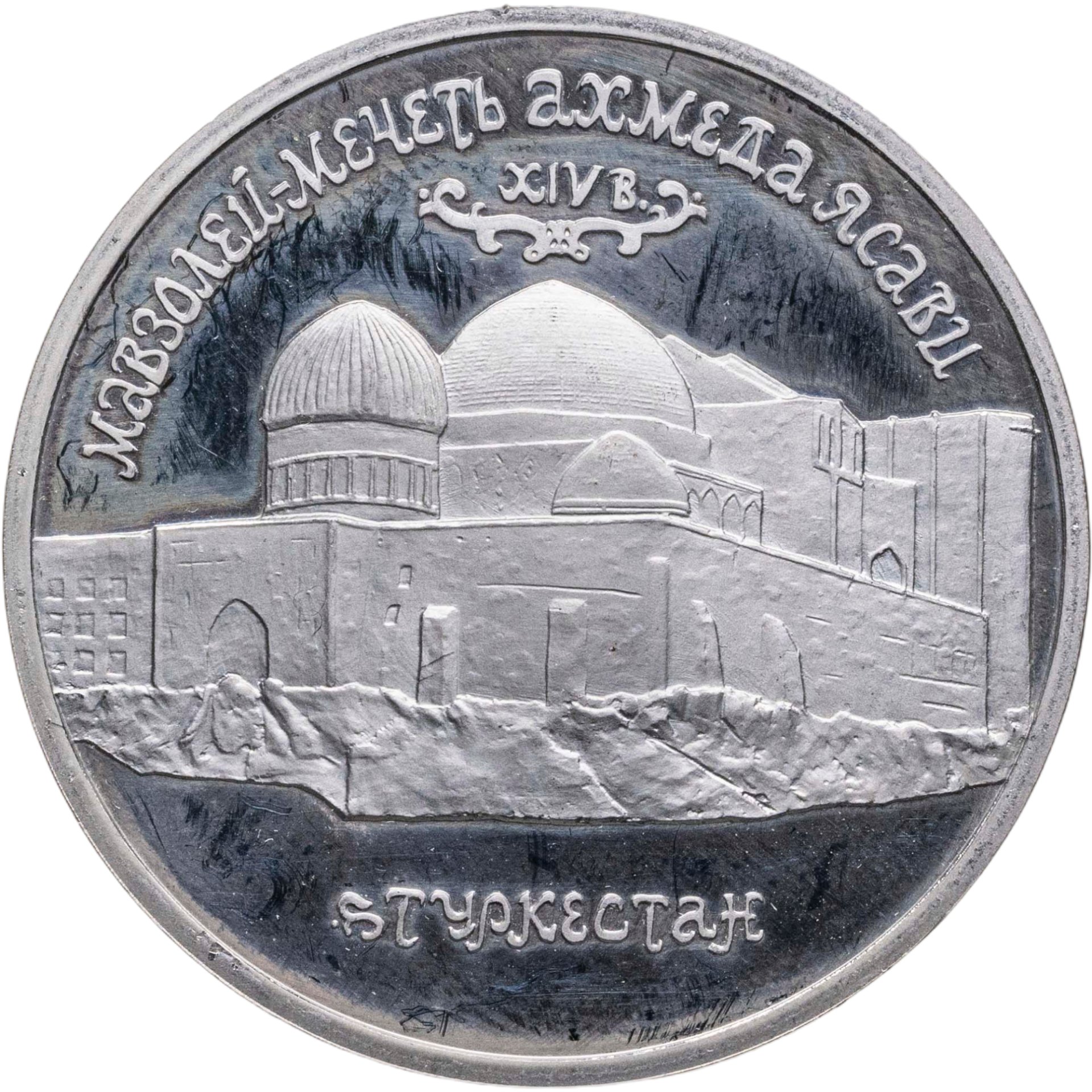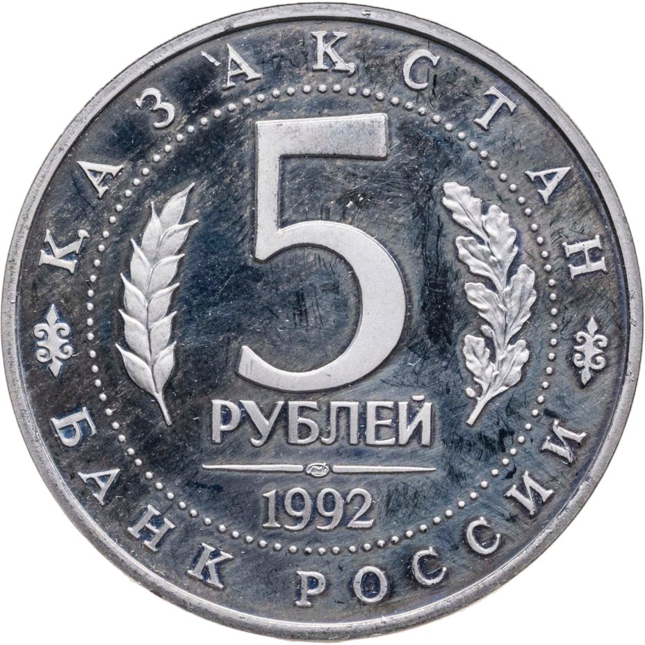 5 рублей 1992 ЛМД Proof Мавзолей-мечеть Ахмеда Ясави в г. Туркестане