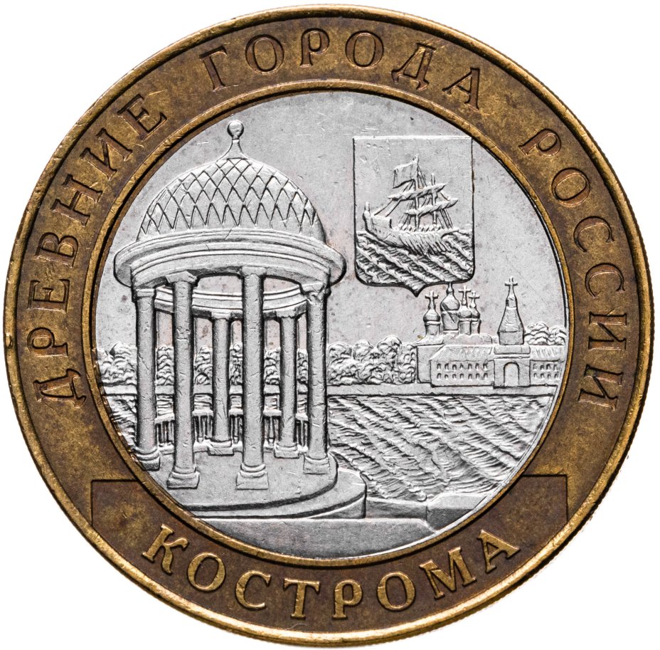 Начавшаяся в 2002 году серия «Древние города России» с близкими и далёкими уголками нашей Родины, вписавшими свои имена в отечественную летопись славных дел. Постепенно серия становится своеобразным учебником истории и географии, а входящие в неё монеты предстают памятными медалями, выгодно представляющими особенности того или иного города. И 10 рублей «Кострома», отчеканенные монетным двором Санкт-Петербурга, выглядит достойным представителем в общем ряду.