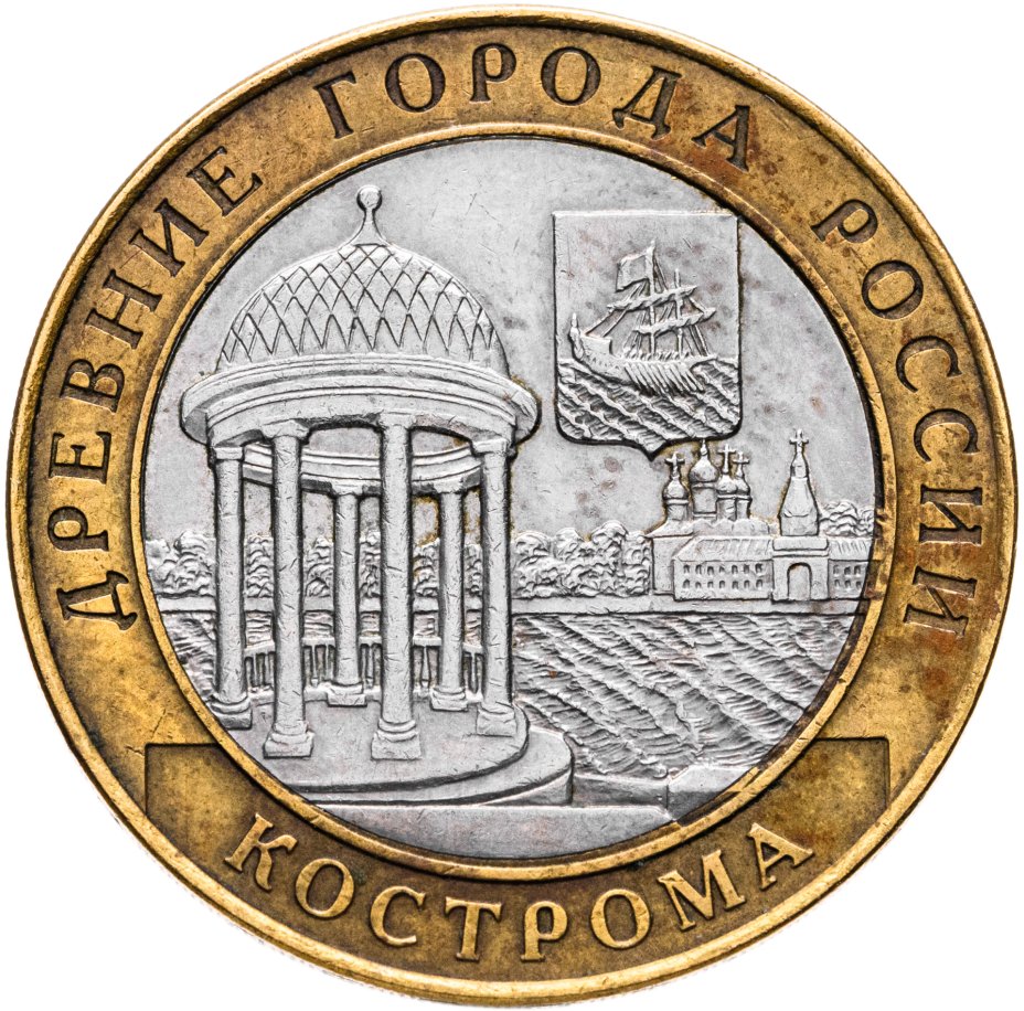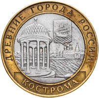 Начавшаяся в 2002 году серия «Древние города России» с близкими и далёкими уголками нашей Родины, вписавшими свои имена в отечественную летопись славных дел. Постепенно серия становится своеобразным учебником истории и географии, а входящие в неё монеты предстают памятными медалями, выгодно представляющими особенности того или иного города. И 10 рублей «Кострома», отчеканенные монетным двором Санкт-Петербурга, выглядит достойным представителем в общем ряду.
