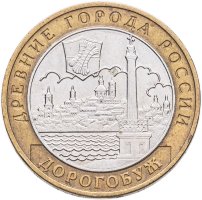 Монету в честь Дорогобужа этого города была представлена в октябре 2003 года, это была третья презентация в серии биметаллических монет «Древние города России». Монета, состоящая из латунного кольца и мельхиорового диска, который украшает изображения, сделанные художником А. Кунацем и скульптором А. Парфеновым, была отчеканена тиражом в пять миллионов штук (как и каждая из монет данной серии) на Московском монетном дворе.