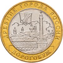 Монету в честь Дорогобужа этого города была представлена в октябре 2003 года, это была третья презентация в серии биметаллических монет «Древние города России». Монета, состоящая из латунного кольца и мельхиорового диска, который украшает изображения, сделанные художником А. Кунацем и скульптором А. Парфеновым, была отчеканена тиражом в пять миллионов штук (как и каждая из монет данной серии) на Московском монетном дворе.