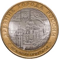 В рельефе реверса силуэты знаковых памятников Великого Новгорода читаются отчётливо, а саму панораму отличает ощущение пространства, образность, убедительность, выразительность. Эта красивая монета – одна из лучших и самых изысканных в серии, поэтому непременно украсит любую нумизматическую коллекцию.