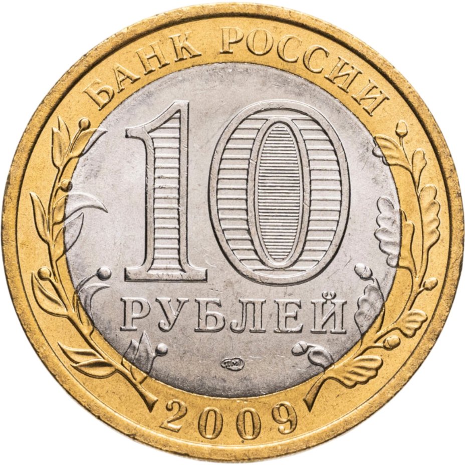 На аверсе – в центре мельхиорового диска обозначен номинал – 10 рублей. Очень интересная и ценная характерная особенность – внутри цифры 0 имеются изображения цифры 10 и надписи «руб». Их возможно разглядеть при изменении угла зрения изображения монеты. В нижней части диска – товарный знак Московского монетного двора, выпустившего серию. На верхней части ободка из латуни присутствует надпись «Банк России», на нижней – дата выпуска монеты – 2009 год. По левую и правую стороны кольца – изображение стилизованного растительного орнамента, переходящее на центральный мельхиоровый диск.