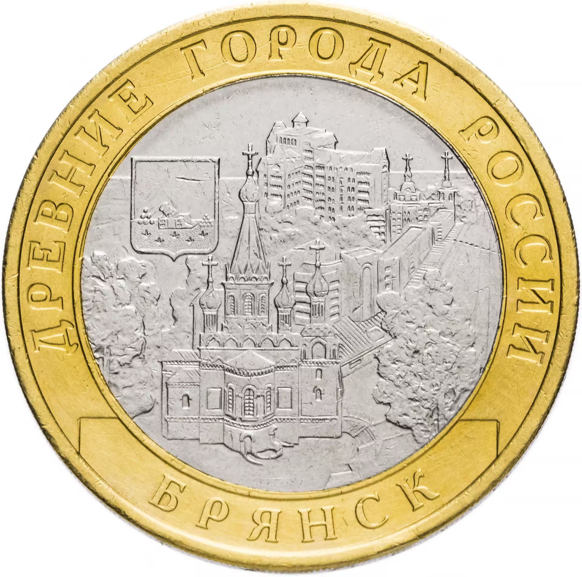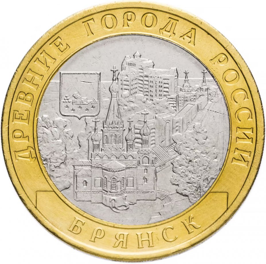 Монета 10 рублей 2010 года «Брянск» отчеканена двором Санкт-Петербурга и входит в масштабную серию «Древние города России» (часто используется сокращение до «ДГР»). Невзирая на сложности с выпуском монет этого года, СПМД отчитался, что им сдан весь запланированный тираж в составе пяти миллионов экземпляров. Аверс монеты един для всех биметаллических десяток. Разница лишь в логотипе двора (на этой монете продолговатый знак СПМД) и дате выпуска.