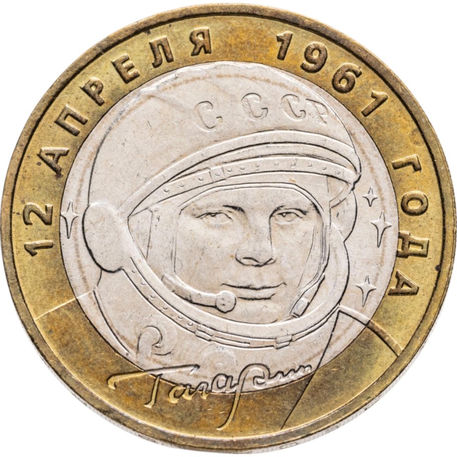 Изображение Ю.А. Гагарина в скафандре, под ним — подпись-факсимиле «ГАГАРИН», вверху по окружности — надпись: «12 АПРЕЛЯ 1961 ГОДА».