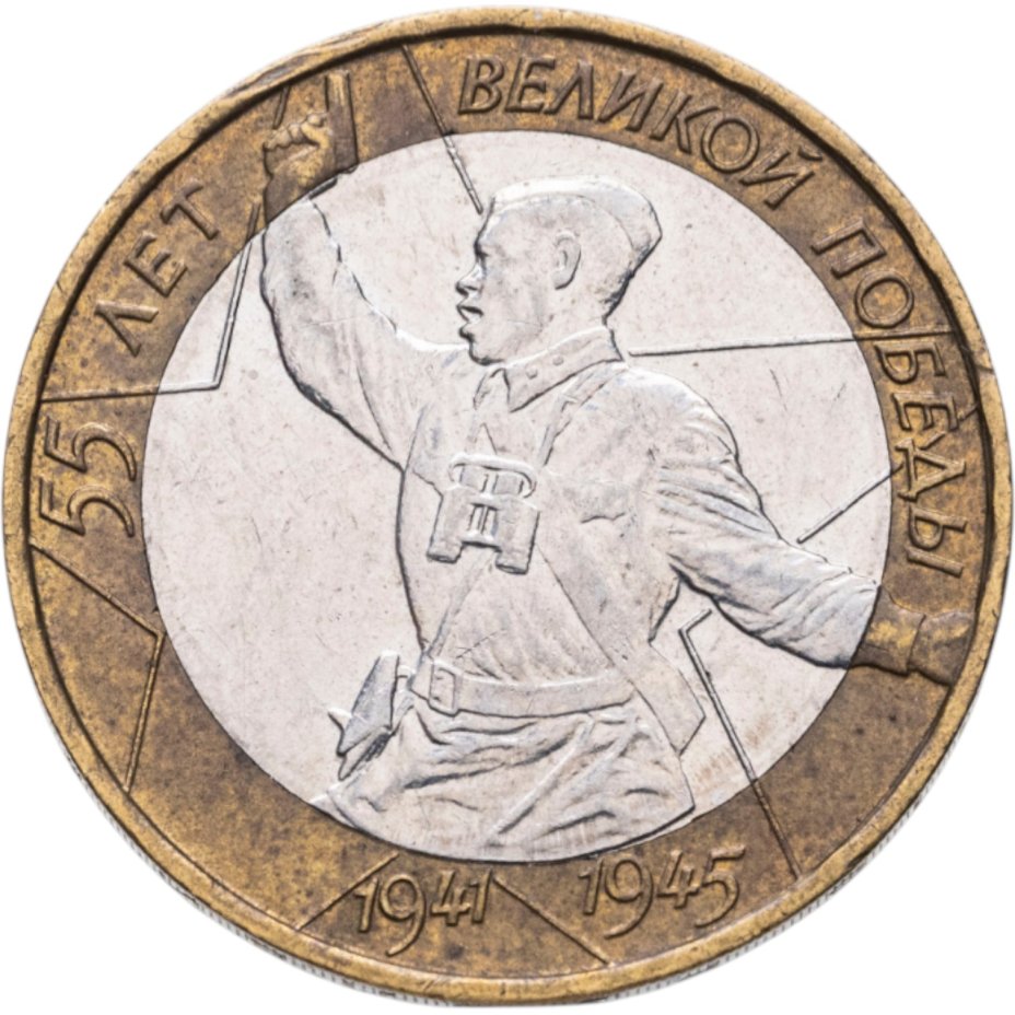 Монета «55 лет Великой Победы» была отчеканена в 200 году на Московском монетном дворе огромным тиражом в 10 млн экземпляров. Это была первая биметаллическая обиходная монета, разработанная в уже новой стране. Сюжетом для создания монеты, которая должна была передать всю боль и героизм нации, стал подвиг Алексея Ерёменко.
