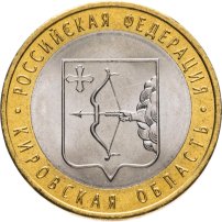Монета «Кировская область» была выпущена в 2009 году, 26-й в серии «Российская Федерация». Изготовлена из мельхиора и латуни, при диаметре в 27 мм и весом 8,4 грамма.