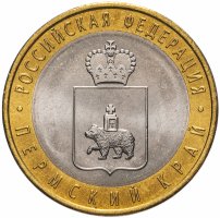 Биметаллическая монета «Пермский край» номиналом десять рублей была выпущена 1 июля 2010 года, в один день с «Ненецким автономным округом». Однако если НАО выпустили весомым тиражом почти в 2 млн. экземпляров, то «Пермский край» куда как меньше — всего лишь 200 000 шт.