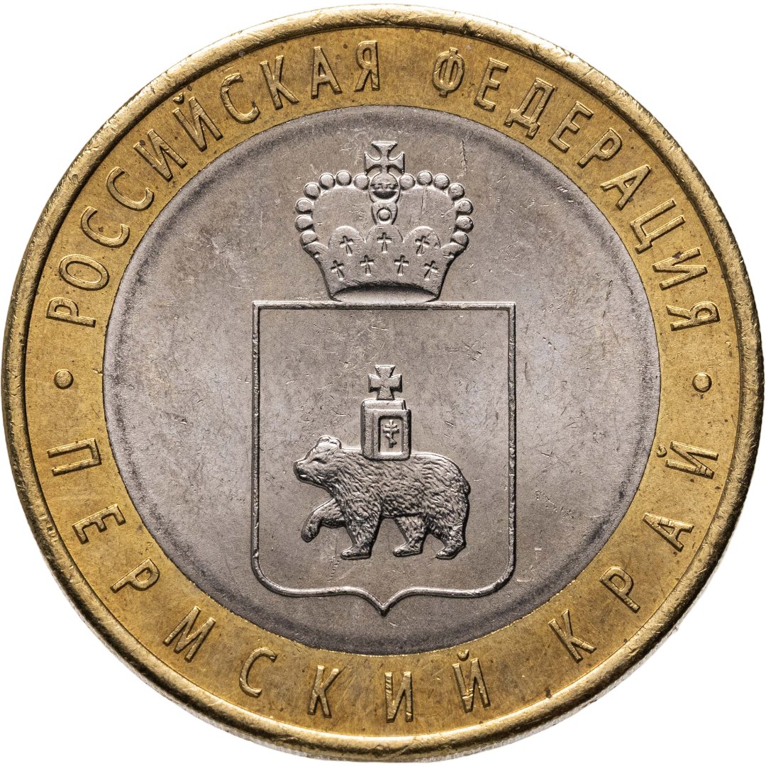 Биметаллическая монета «Пермский край» номиналом десять рублей была выпущена 1 июля 2010 года, в один день с «Ненецким автономным округом». Однако если НАО выпустили весомым тиражом почти в 2 млн. экземпляров, то «Пермский край» куда как меньше — всего лишь 200 000 шт.