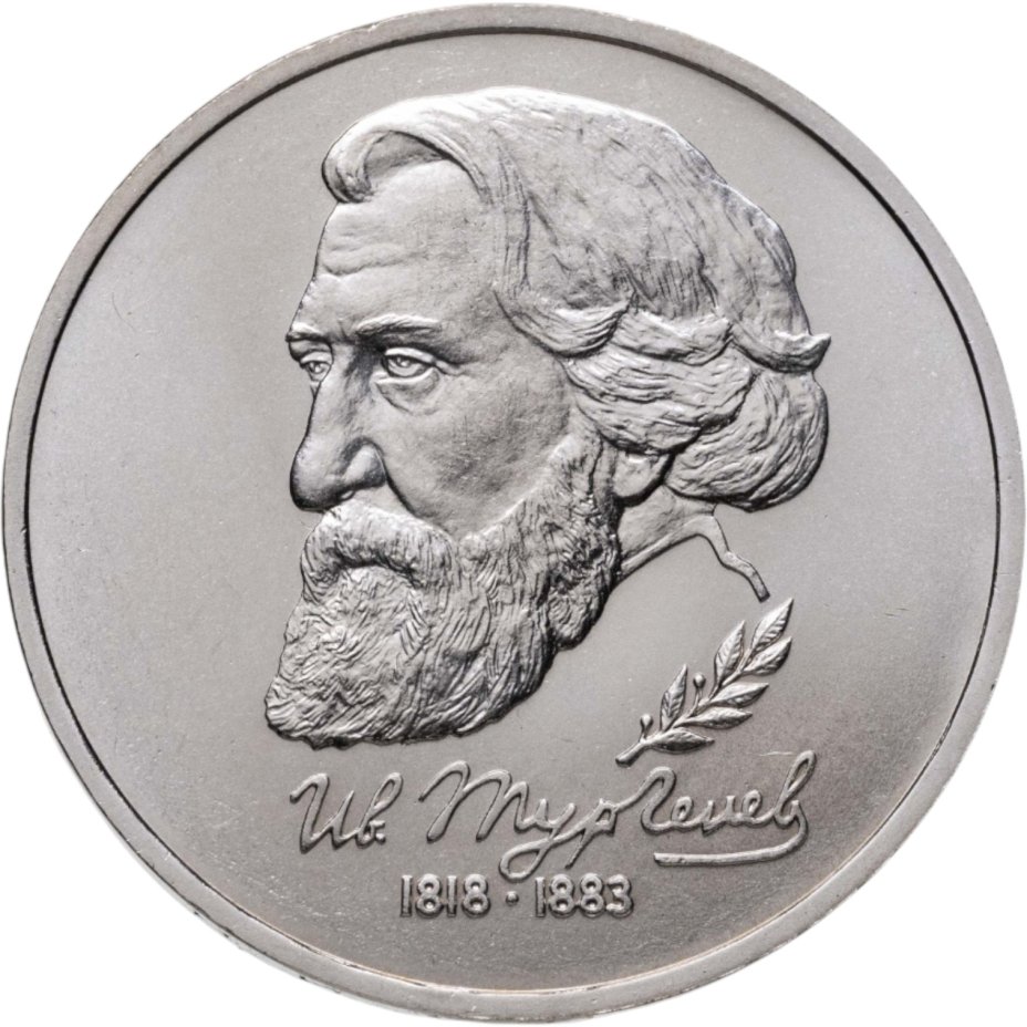 1 рубль 1993 ЛМД 175-летие со дня рождения И.С. Тургенева