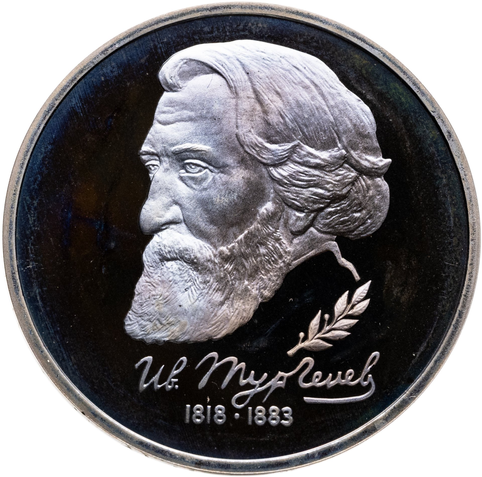 Купить 1 рубль 1993 ЛМД 175-летие со дня рождения И.С. Тургенева, в слабе Монетник.ру PF62