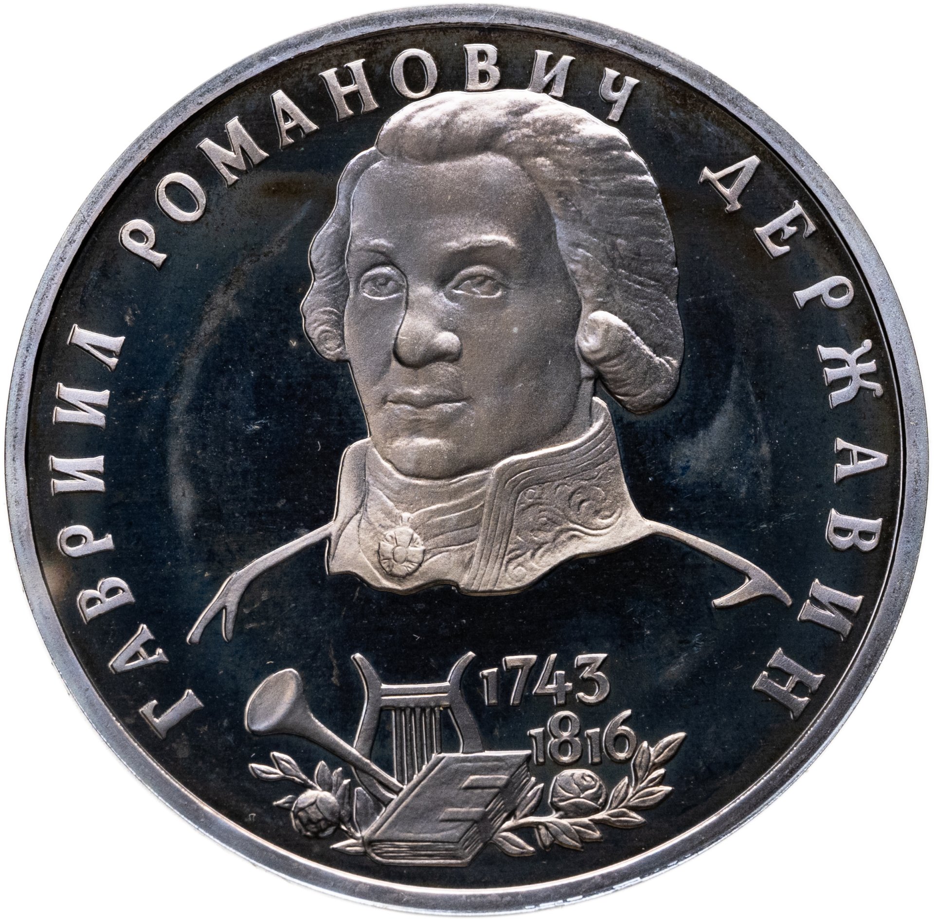 купить 1 рубль 1993 ЛМД "250-летие со дня рождения Г.Р. Державина", в слабе Монетник.ру PF63