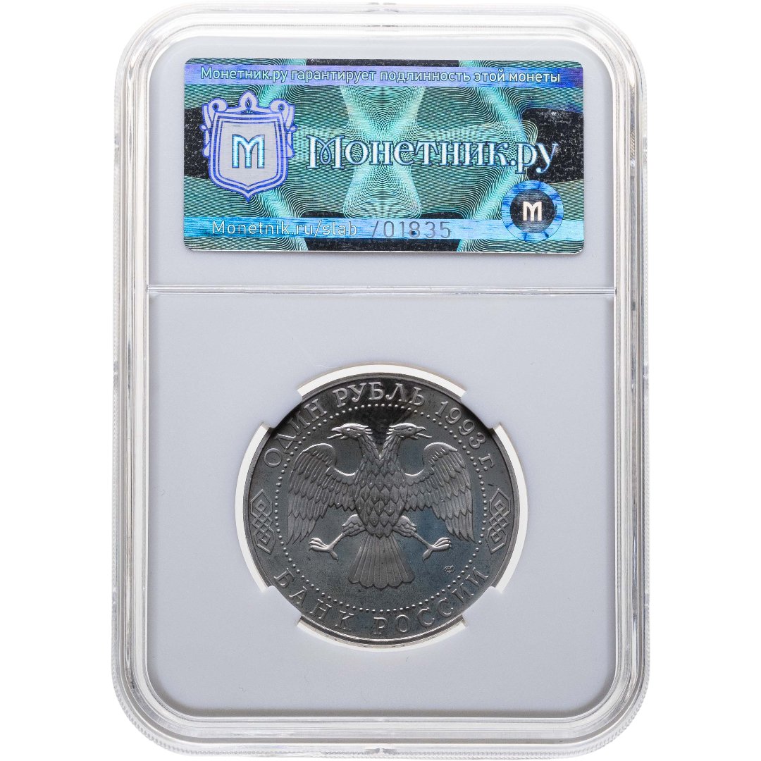 1 рубль 1993 ЛМД "250-летие со дня рождения Г.Р. Державина", в слабе Монетник.ру PF63