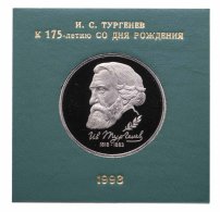 1 рубль 1993 ЛМД Proof 175-летие со дня рождения И.С.Тургенева