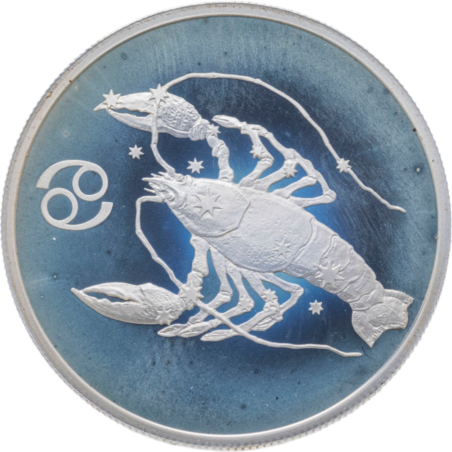 Изображение скорпиона на фоне звёзд, вверху - знак зодиакального созвездия Скорпиона.