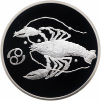 Обзор монет мира из драгоценных и недрагоценных металлов на тему знака «Рак». Описание. Фото