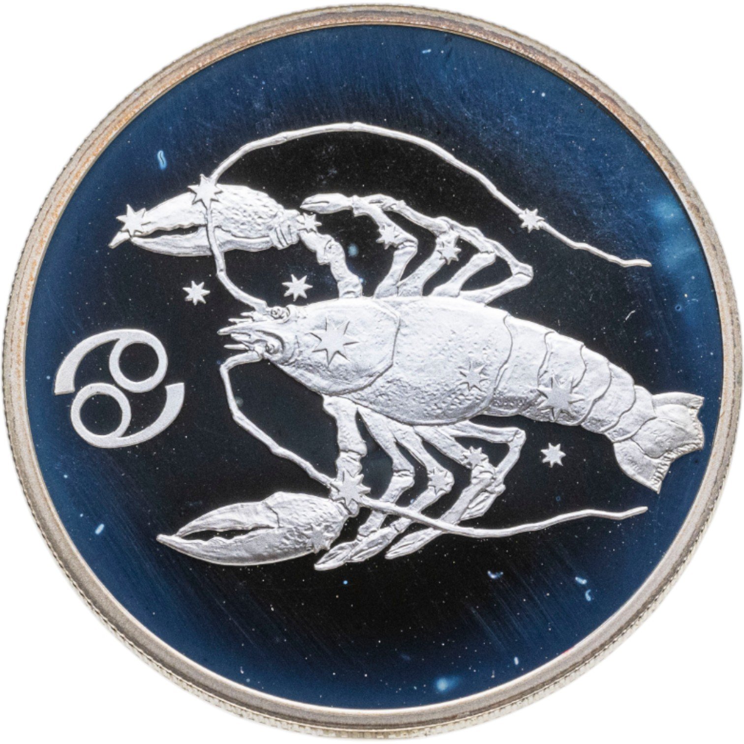 Изображение рака на фоне звeзд, слева - знак зодиакального созвездия Рака.