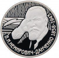 • Название монеты: режиссёр, один из основателей МХАТа В.И. Немирович-Данченко - 150 лет со дня рождения (23.12.1858 г.)