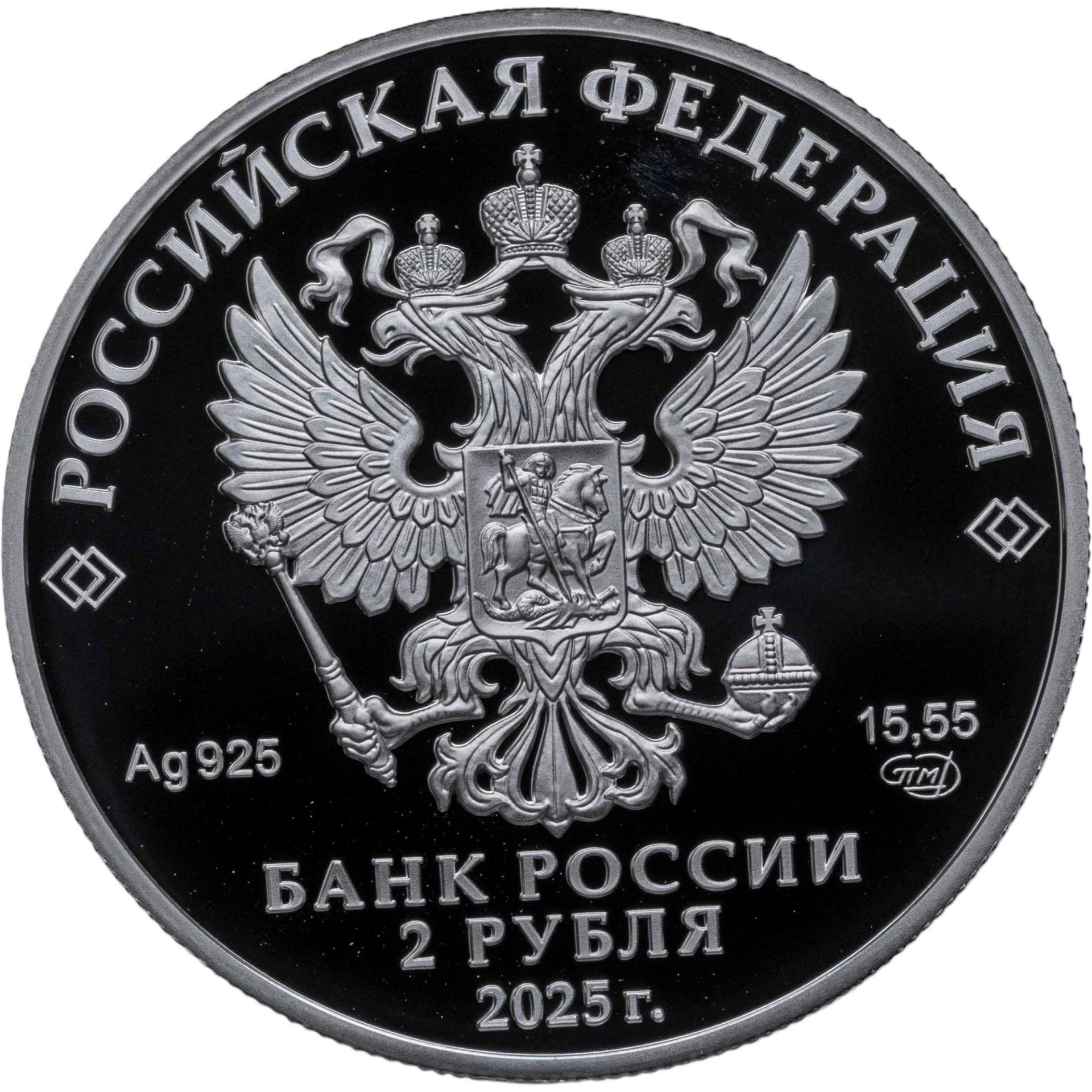 2 рубля 2025 СПМД "Контр-адмирал А.Ф. Можайский, к 200-летию со дня рождения"