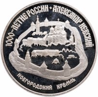 3 рубля 1995 ЛМД Proof "1000-летие России: Новгородский кремль"