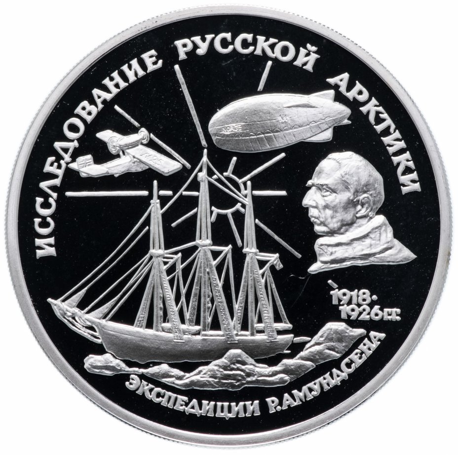 Купить 3 рубля 1995 ММД "Исследование русской Арктики - Р. Амундсен"