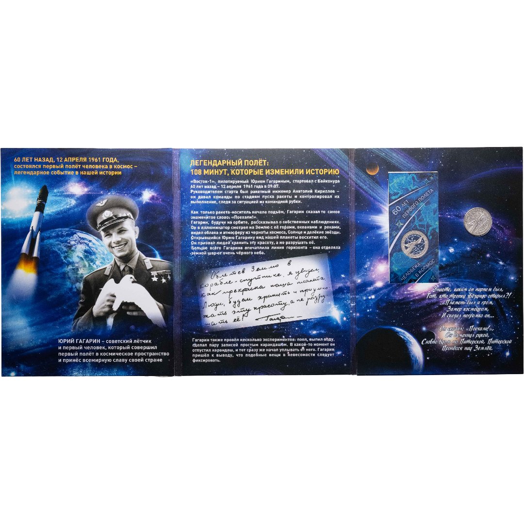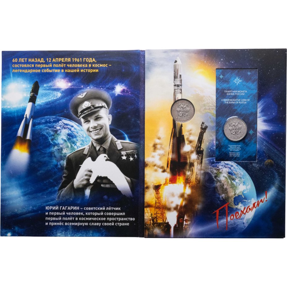 Купить 25 рублей 2021 ММД "60-летие первого полета человека в космос" набор из двух монет в капсульном альбоме
