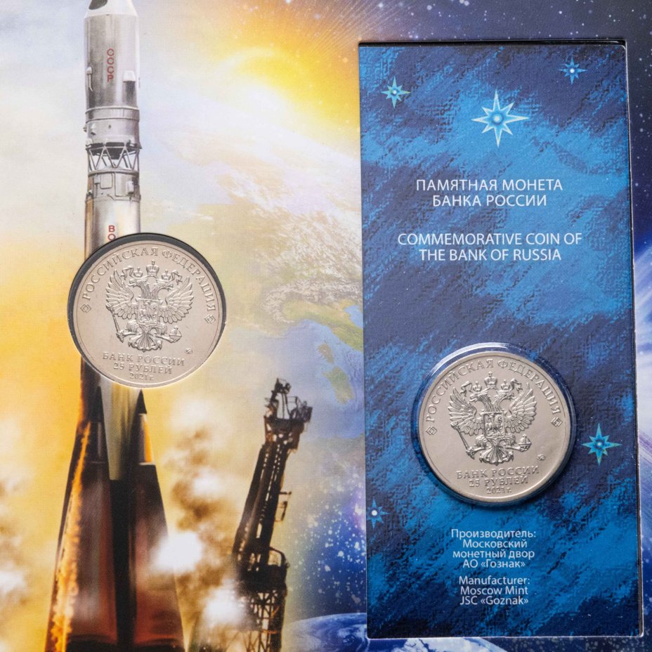 25 рублей 2021 ММД "60-летие первого полета человека в космос" набор из двух монет в капсульном альбоме