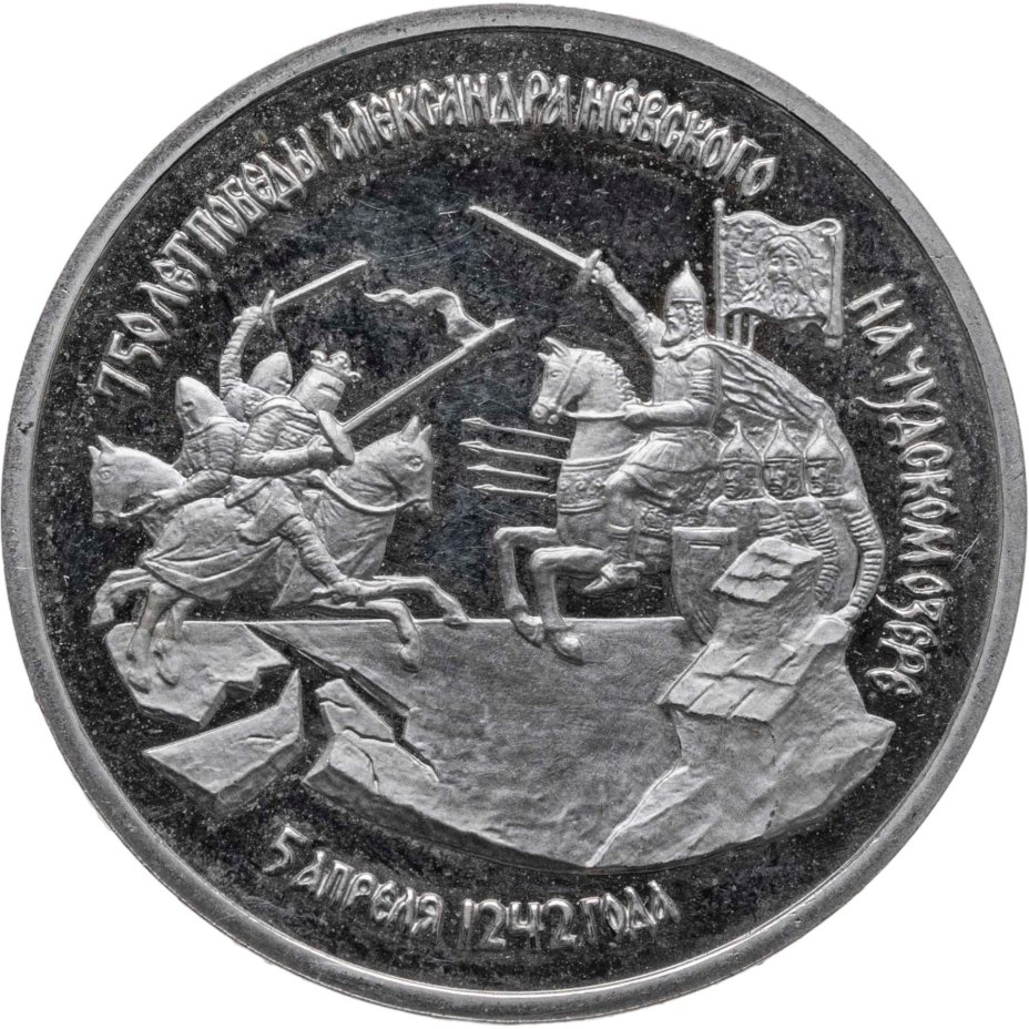 3 рубля 1992 ЛМД Proof "750-летие Победы Александра Невского на Чудском озере"