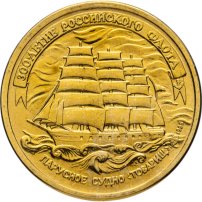 5 рублей 1996 ЛМД 300-летие Российского флота - Парусное судно "Товарищ"