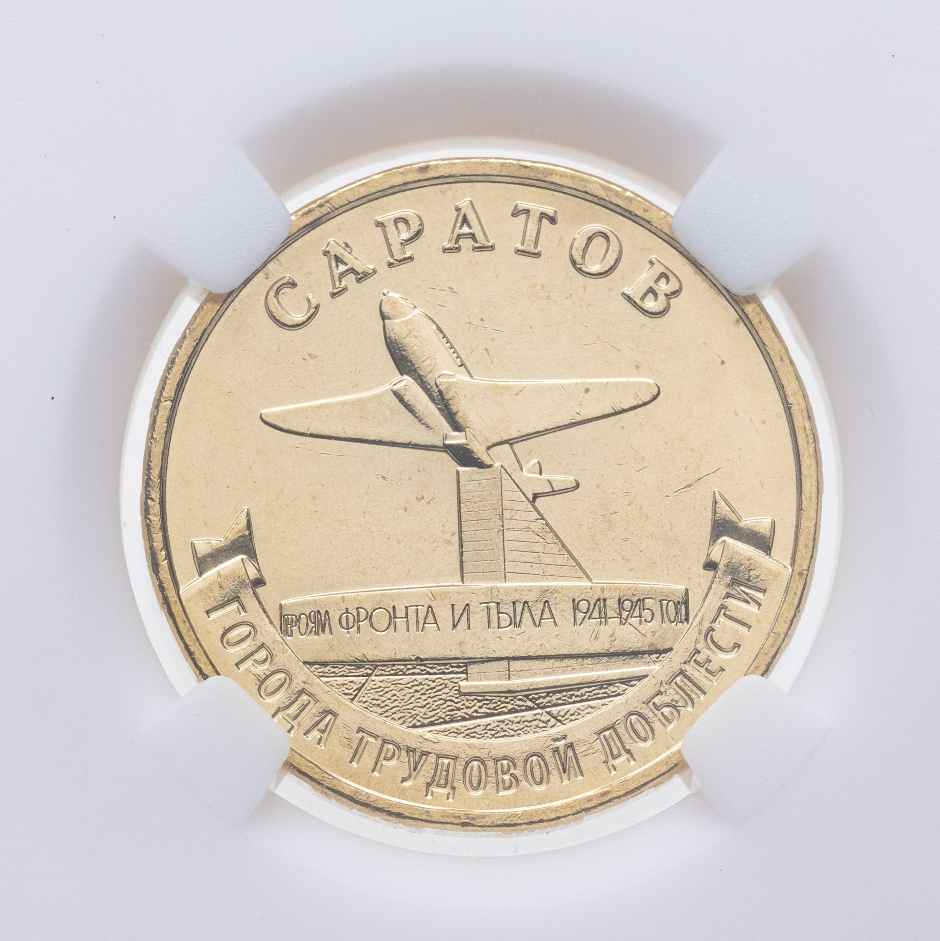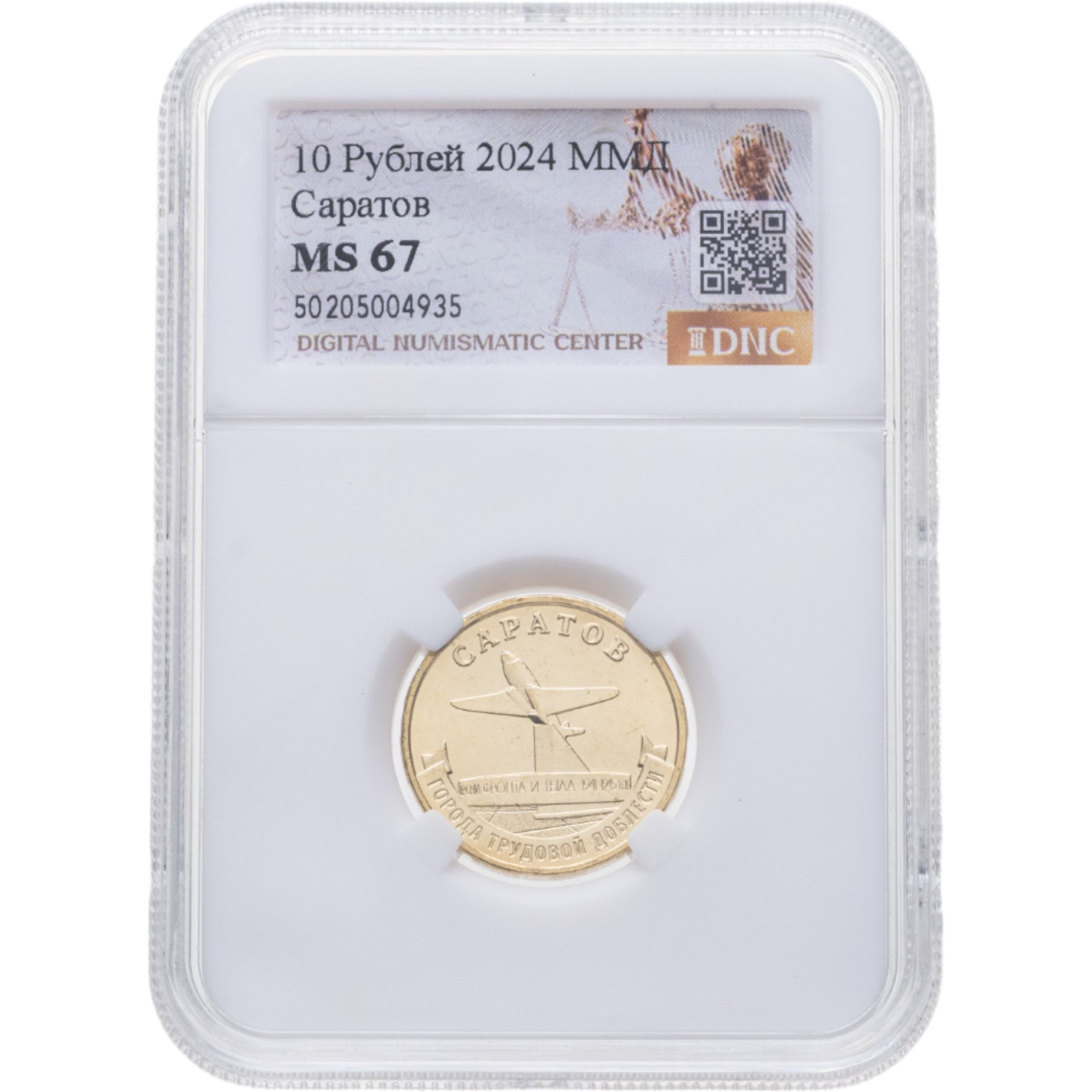Купить 10 рублей 2024 Саратов "Города трудовой доблести" в слабе DNC MS67