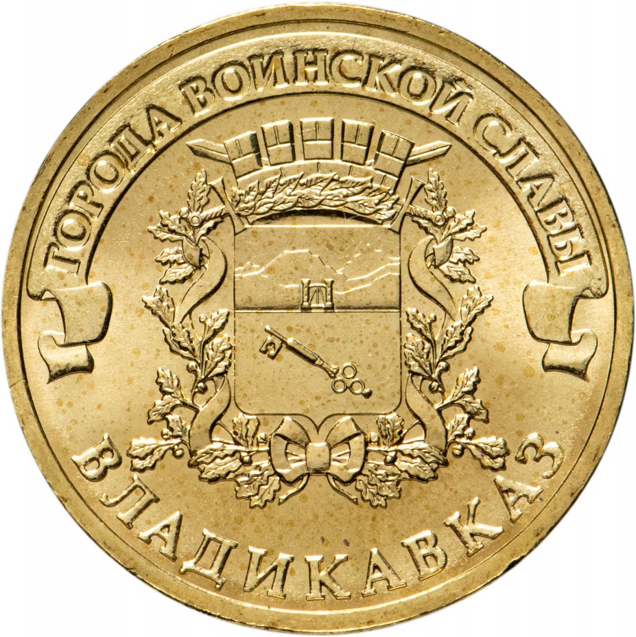 «Владикавказ» – 4 монета в серии «Города Воинской Славы», была выпущена на Санкт-Петербургском монетном дворе 1 июля 2011 года. Указ о присвоении городу это высокого воинского звания за номером 1343 был подписан Президентом страны 8 октября 2007 года, первым во второй «партии».