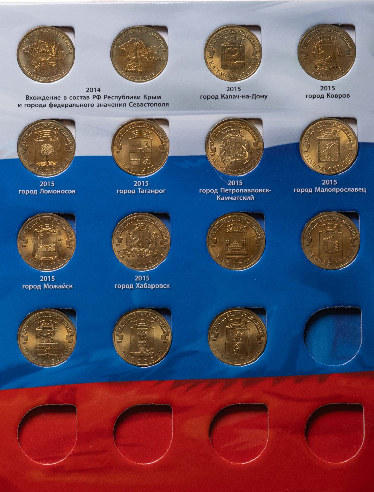 Купить Набор 10 рублей 2011-2016 "Города воинской славы" в сувенирном альбоме