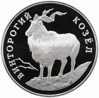 Купить 1 рубль 1993 ЛМД Proof "Красная книга - винторогий козёл (или мархур)"